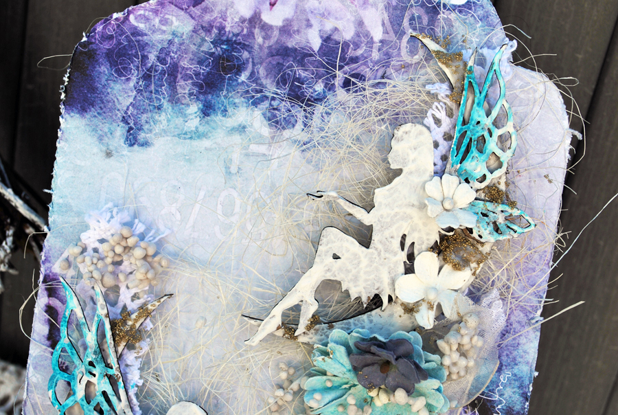 To finish it all off I tucked in a few chipboard feathers and cut little flair from the Birds of a …set.