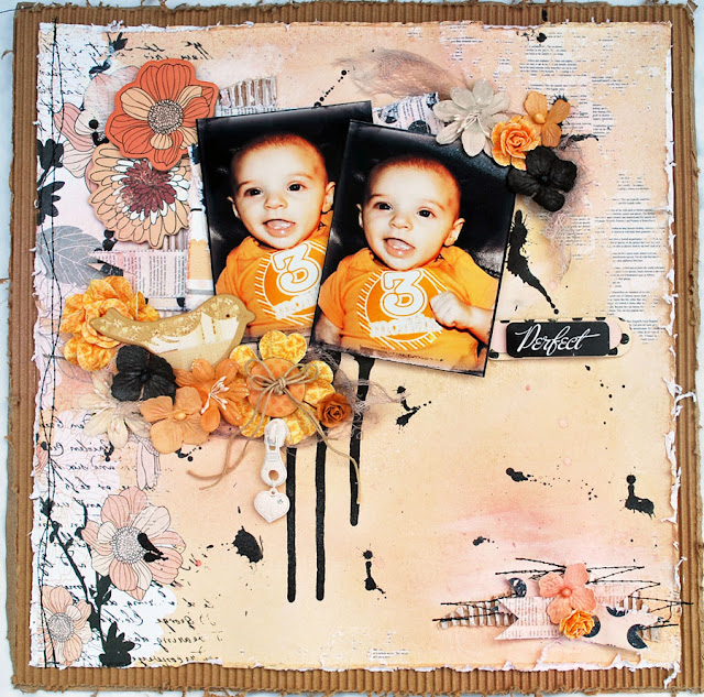 For this layout I have used the same collection of papers and added lots of stamping with the paints in the kit.