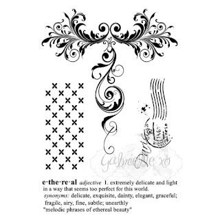 After I had all of the paper layers in place it was time to add some stamping before the finishing off the cluster. I have used Gabi’s Line Stitch stamp and Gabi’s Ethereal stamp sets around the edges, and around the photo cluster.